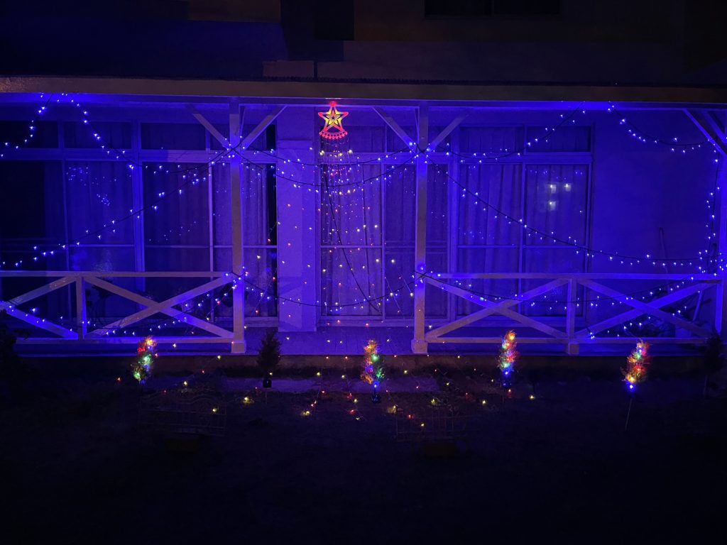こちらの教会の礼拝堂の前をイルミネーションで飾りました。夕方5時ころから点灯します🎄